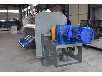 1.混合机开动后犁刀绕轴旋转,带动物料沿方筒体径向作周向湍动,同时把物料沿犁刀两侧面的法线方向抛出。