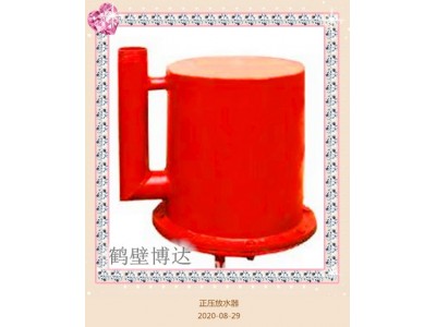 正压自动放水器铅直安装,无论是在积水阶段或放水阶段,放水阀始终处于水的淹没状态,从而既能排放管路中的积水,又能防止抽放管路中的瓦斯由放水器泄露。
