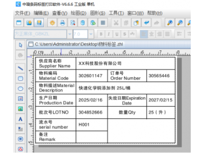 物料标签是用于标识、追踪和管理物料的标识工具,广泛应用于仓储、物流、生产制造等领域。制作物料标签时需要根据具体用途、环境以及管理系统的要求来设计。根据需求,物料标签中通常包含以下信息:供应商名称、物料编码、物料描述、生产日期、失效日期、批次号、数量、二维码等。下面我们来看看中琅可变二维码打印软件中如何批量制作包含上面这些信息的物料标签。